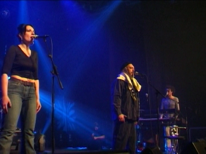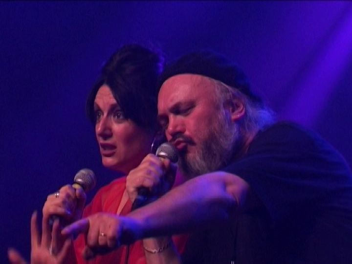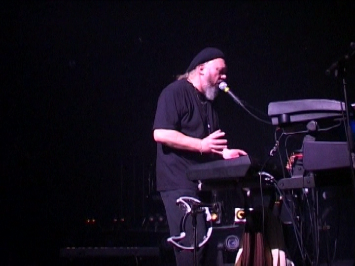 Ну чё, малька впечатлений. Вообще, самое главное - я в полном восторге! Первый из трёх DVD Ange, который по-настоящему понравился. Конечно, это - шоу. Нет, не так - Шоу! Присутствует всё - видеоряд, звук, экшн. Никакого сравнения с предыдущими записями на швейцарской ферме, где, окромя музыки, смотреть было некуда. А тут - просто двадцать первый век какой-то... Хоть Кристиан и постарел, поседел, приобрёл пузо, но - хорош, хорош... На клавишах с ним теперь играет сынок, вылитый папаша в молодости. И голос у него покруче будет, чем у отца. Правда, в проге это - не главное... И самое заметное изменение - в составе появился женский вокал: Каролин Крозат - это что-то! Черноволоса-длинноноса, сисяста-голосиста, короче - настоящая француженка. Красива, обаятельна и хорошая актриса - настолько она органично вписалась во все эти актёрские штучки Декампса. Это надо видеть, что они там вдвоём вытворяют! К примеру, на второй композиции диска она превращает Декампса в клоуна с красной картошкой-носом и чёрными очками, подсовывает ему детские клавиши ладони в три длиной и, пока Кристиан играет и поёт, режется в карты с гитаристами. Да и глотка у неё неслабая - на пару октав... С молодым Декампсом они здорово подняли вокальную часть, хотя и сам фронтмен ещё не до конца постарел, даром что седобород.