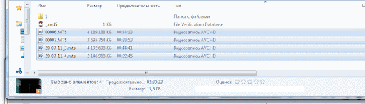 Размер потока : 276 Мбайт (2%) Четыре файла с камеры склеено в один -