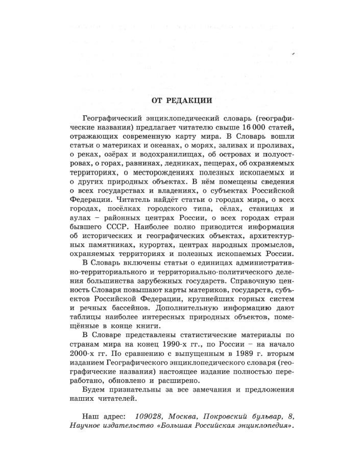 Описание: Географический энциклопедический словарь (географические названия) представляет собой дополненное и переработанное справочное издание, предназначенное для широкого круга читателей, содержит свыше 16 000 статей, отражающих современную карту мира: страны, субъекты Российской Федерации, города, материки, океаны, моря, заливы, проливы, реки, озёра, водохранилища, острова, полуострова, горы, равнины, ледники, пещеры и другие объекты.