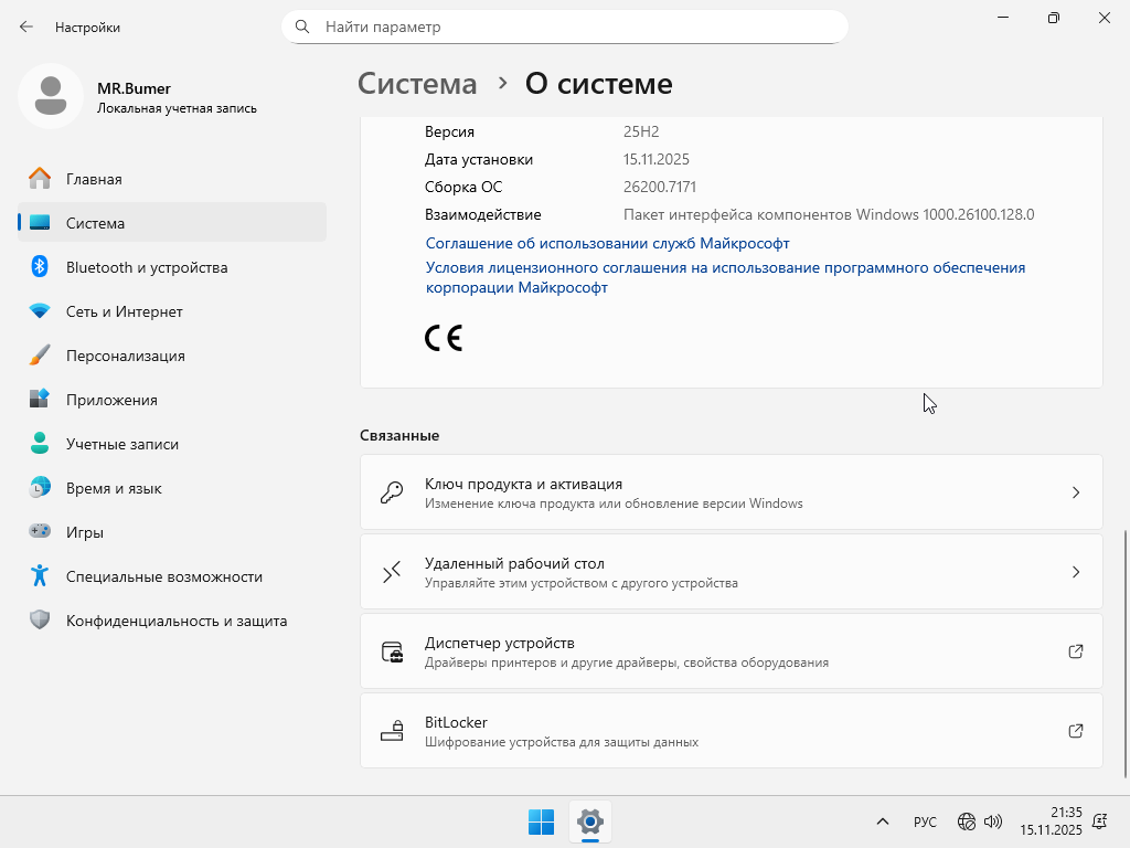 Windows 11 Pro 25H2 Lite (build 26200.7171) x64 by MR.Bumer [RU]Стадия разработки : Release Год/Дата Выпуска: 2025 Версия: 26200.7171 (25H2) Разработчик: Microsoft Автор сборки: MR.Bumer Разрядность: 64bit Язык интерфейса: Русский Таблэтка: требуется Системные требования: