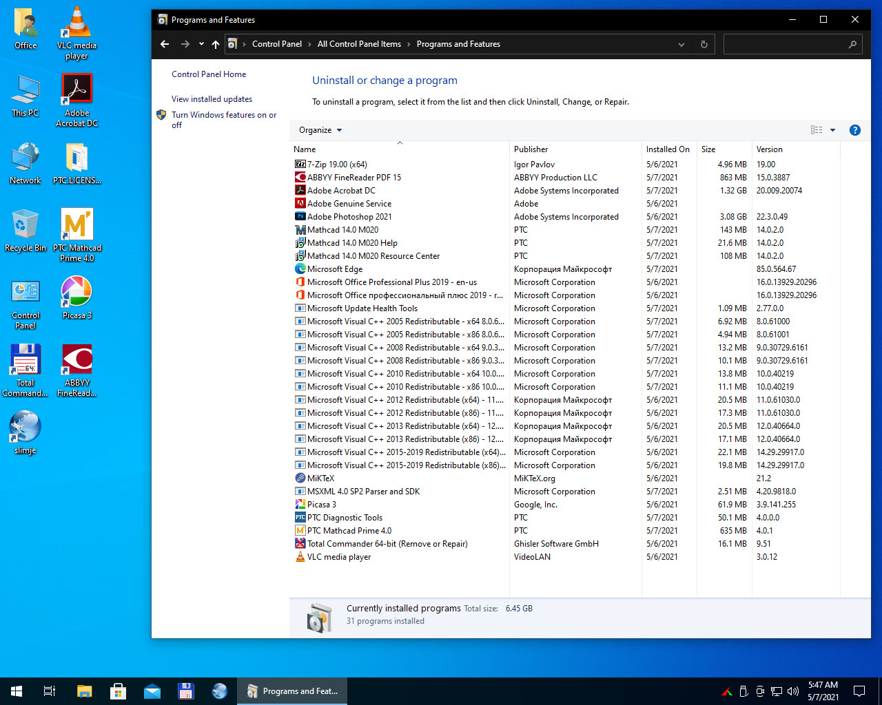 Установлено несколько программ для работы в научном направлении