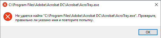 При попытке запуска возникает ошибка "Adobe Acrobat не может быть запущена из C:\Program Files. Это расположение предназначено только для стандартного локального программного обеспечения". Ошибку первый раз вижу, даже не гуглится