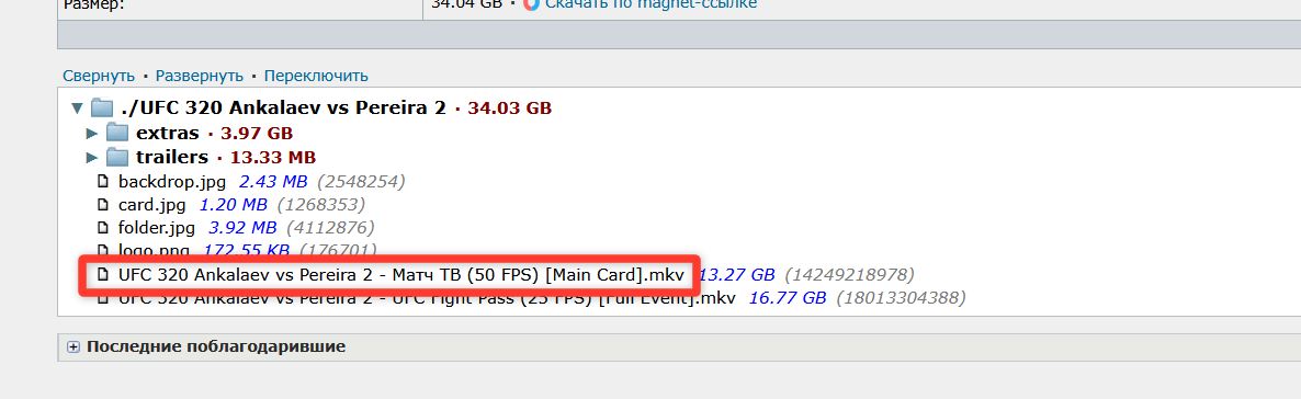 Полное имя : \UFC\UFC\UFC 320 Ankalaev vs Pereira 2\UFC 320 Ankalaev vs Pereira 2 - Матч ТВ (50 FPS) [Main Card].mkv