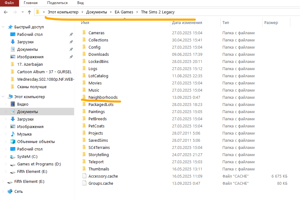 Торжок это из допа про бизнес, ну я, может, чего-то не понимаю,но вот так выглядит список всех папок по этому маршруту "Документы - EA Games - The Sims 2 Legacy" и вот той самой папки, про которую ты пишешь "The Sims 2 Legacy" , как раз таки нет, и в поиске нигде не выдает(