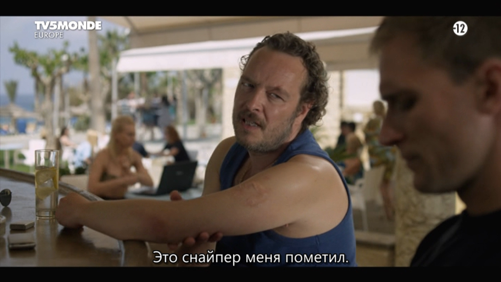 Палас Бич отель Palace Beach HotelСтрана: Франция, Бельгия Жанр: драма Год выпуска: 2014 Продолжительность: 01:30:50Перевод: Субтитры (русский перевод И.Рыбкиной, Éclair Media) Субтитры: русские, английские, французские, немецкие, нидерландские Оригинальная аудиодорожка: французский Режиссер: Филипп Вено / Philippe Venault В ролях: Тьерри Годар / Thierry Godard (Colonel Letelier), Рафаэль Агоге / Raphaëlle Agogué (Docteur Laurence Di Vanno), Марго Бансийон / Margot Bancilhon (Sergent Elsa Baudouin), Тома Куман / Thomas Coumans (Caporal Franck Fisher), Франсуа-Давид Кардоннель / François-David Cardonnel (Caporal Mario Novacek) Описание: Апрель 2012 года. Французские солдаты, вернувшиеся из Афганистана, разместились в роскошном отеле на Кипре, где должны провести три дня перед отправкой домой. Миссия полковника Летелье – предотвратить скандал, избежать каких-либо обвинений против армии и вместе с военным психиатром Лоранс ди Вано попытаться оценить психическое состояние солдат после военной операции. Доп. информация: Hot Bird (13.0°E) TV5MONDE Europe DVB-S Качество видео: DVB Формат видео: MKV Видео: MPEG Video 2, 720x576@1024x576 (16:9), 25 fps, ~3041 kbps avg, 0.293 bit/pixel Аудио: MPEG Audio 2, 2 ch, 48 kHz, 192 kbps - французский Формат субтитров: softsub (SRT)