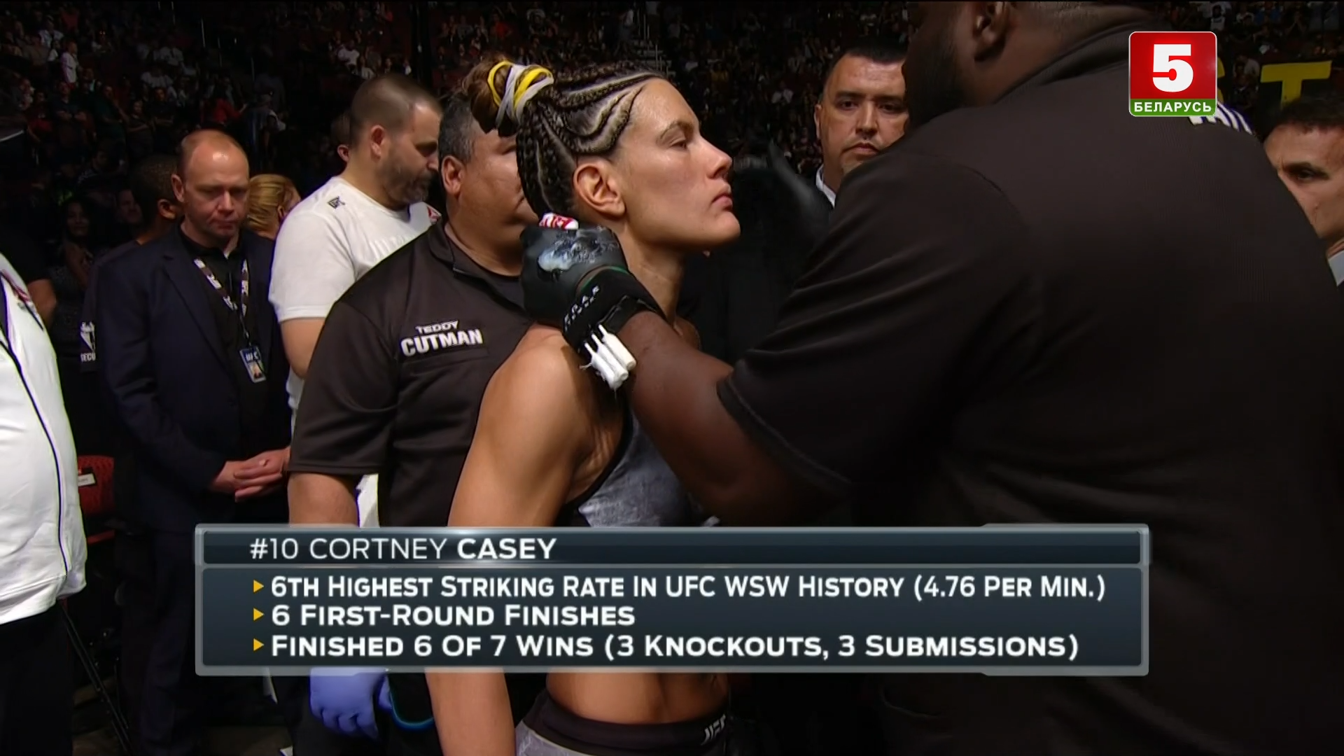 #10 Кортни Кейси (Гавайи, США; 3-4 в UFC) vs #7 Мишель Уотерсон (Альбукерке, Новая Мексика; Jackson Wink MMA Academy, США; 2-2 в UFC, серия 0-2), до 52 кг\ Strawweight