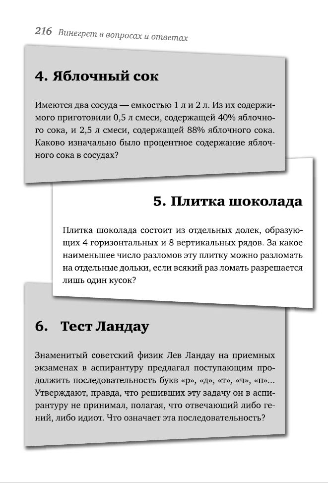 Это издание порадует поклонников советской традиции интеллектуальных развлечений. На его страницах собраны лучшие, проверенные временем задачи и головоломки, по которым учились нестандартно мыслить еще наши деды и родители. Решение такого рода задач не только доставит массу удовольствия. Оно поможет усовершенствовать навыки, необходимые образованному человеку: сообразительность, умение логически обосновать принятое решение, эрудицию в самых важных областях знаний — физике, математике, а также астрономии. И несомненно, креативность мышления, поскольку любой из вопросов может оказаться проверкой умения отойти от стереотипов.