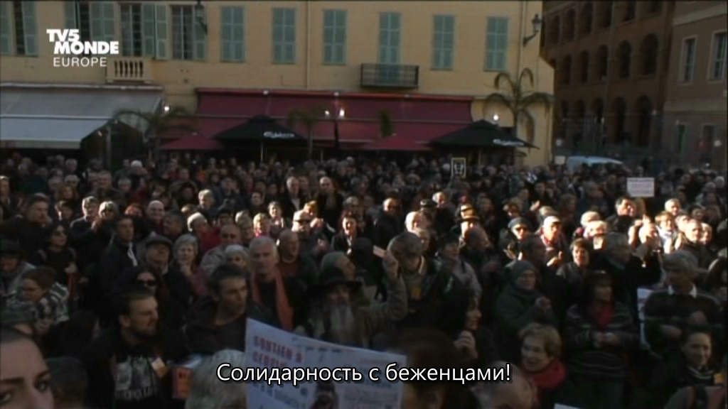 1 00:00:11,920 --> 00:00:13,957 Впервые я их увидела, 2 00:00:14,720 --> 00:00:19,078 когда провожала своих детей на вокзал Вентимильи. 3 00:00:19,840 --> 00:00:22,309 Вокзал был не похож на себя, так как перед ним 4 00:00:22,720 --> 00:00:25,838 была огромнейшая толпа людей, 5 00:00:29,040 --> 00:00:30,713 по которым было видно, 6 00:00:30,880 --> 00:00:33,110 что они совершили долгое путешествие. 7 00:00:34,760 --> 00:00:36,239 Там были... 8 00:00:37,560 --> 00:00:40,791 мужчины, а также множество женщин и детей. 9 00:00:43,360 --> 00:00:46,751 Я не совсем поняла, что происходит... 10 00:00:47,120 --> 00:00:52,069 Я лишь помню, что у меня возникло странное чувство: 11 00:00:53,600 --> 00:00:56,114 все они сидели там, без... 12 00:00:58,800 --> 00:01:02,350 Они словно чего-то ждали, 13 00:01:02,720 --> 00:01:04,836 но сами не знали, чего именно. 14 00:01:11,360 --> 00:01:13,670 Я курила сигарету с друзьями перед рестораном, 15 00:01:13,840 --> 00:01:16,150 где мы отмечали чей-то день рождения. 16 00:01:17,400 --> 00:01:20,392 И тут к нам подошёл мигрант. 17 00:01:20,600 --> 00:01:22,238 Я сразу это поняла. 18 00:01:23,440 --> 00:01:27,399 Он был совсем тощим. Он хотел попасть в Париж. 19 00:01:27,840 --> 00:01:31,515 Я не знала, что делать. Я позвала сына, сказала ему: 20 00:01:31,640 --> 00:01:34,712 "Принеси ему что-нибудь тёплое,