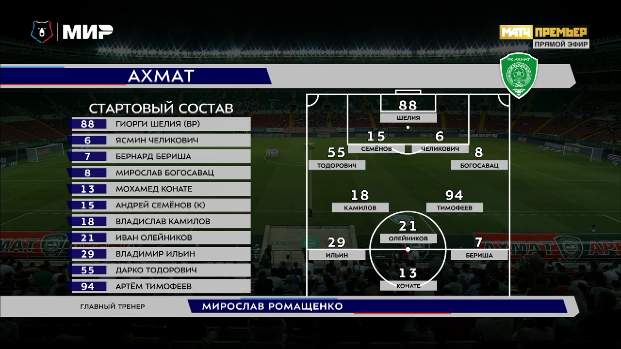 Чемпионат России 2023-2024. 5-й тур Ахмат – ОренбургВид спорта: Футбол Дата/Год выпуска: 20.08.2023 Язык комментариев: Русский () Описание: 20 августа 2023, воскресенье. 20:00 МСК Стадион: Ахмат-Арена (Грозный, Россия), вместимость: 30597