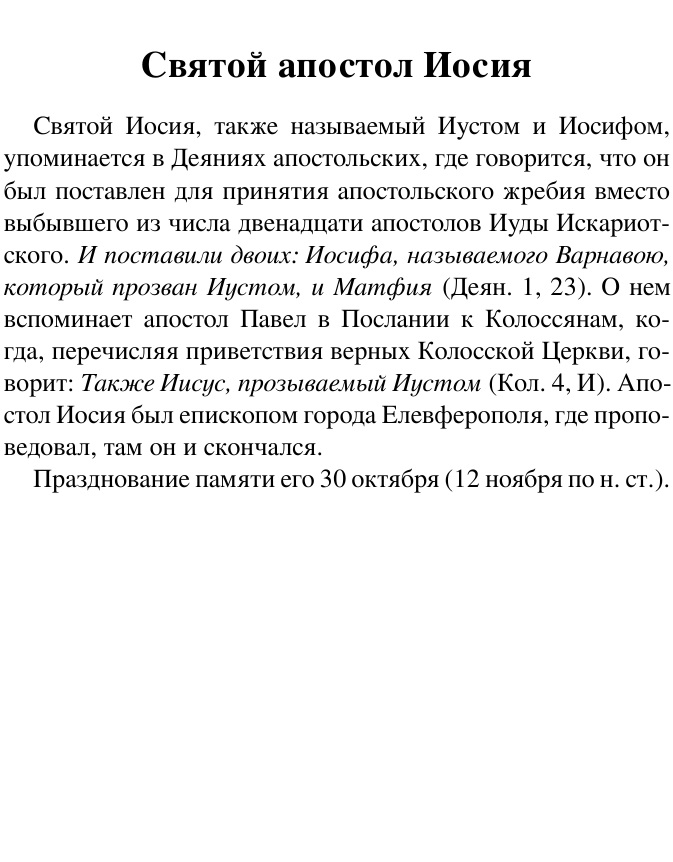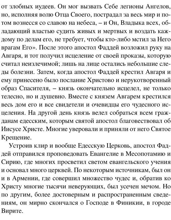 Описание: В книге собраны жития учеников Спасителя – двенадцати апостолов, апостолов от семидесяти, описания трудов и подвигов святых равноапостольных мужей и жен первых веков христианства, а также живших в последующие времена (включая просветителей славян святых Кирилла и Мефодия, крестителя Руси святого Владимира и равноапостольную княгиню Ольгу). В тексте воспроизведены литографические изображения из оригинального издания 1907 года.