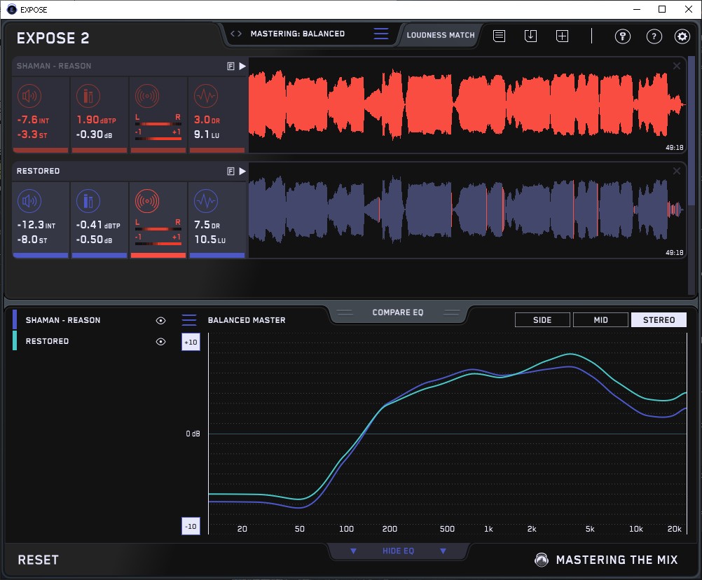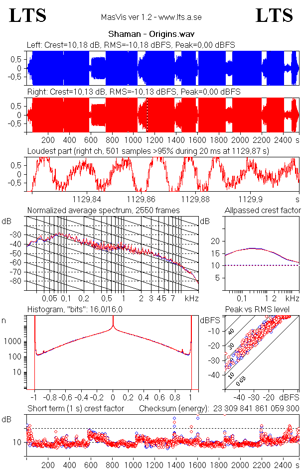 Реальные значения DR: DR10 Частота: 44100 Гц