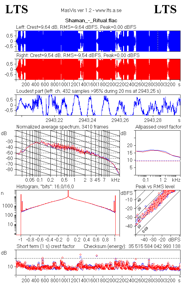Общее Полное имя : \Shaman\2002 - Ritual\01. Ancient Winds.flac Формат : FLAC Формат/Информация : Free Lossless Audio Codec Размер файла : 16,2 Мбайт Продолжительность : 3 мин. 17 с. Режим общего битрейта : Переменный Общий битрейт : 688 Кбит/сек Альбом : Ritual Альбом/Исполнитель : Shaman Имя трека : Ancient Winds Имя трека/Расположение : 01 Имя трека/Всего : 10 Исполнитель : Shaman Издатель : Mercury – 04400645212 Жанр : Progressive/Power Metal Дата записи : 2002 Обложка : Yes Описание обложки : cover.jpg (1440x1440) Тип обложки : Cover (front) MIME-тип обложки : image/jpeg Примечание : [declipped & DR-increased version] Аудио Формат : FLAC Формат/Информация : Free Lossless Audio Codec Продолжительность : 3 мин. 17 с. Вид битрейта : Переменный Битрейт : 667 Кбит/сек Канал(-ы) : 2 канала Расположение каналов : L R Частота дискретизации : 44,1 КГц Битовая глубина : 16 бит Метод сжатия : Без потерь Размер потока : 15,7 Мбайт (97%) Библиотека кодирования : CUETools FLACCL 2.2.5 MD5 незакодированного содержимого : BCF82579ED10BB7F36113C7F421DFDEC