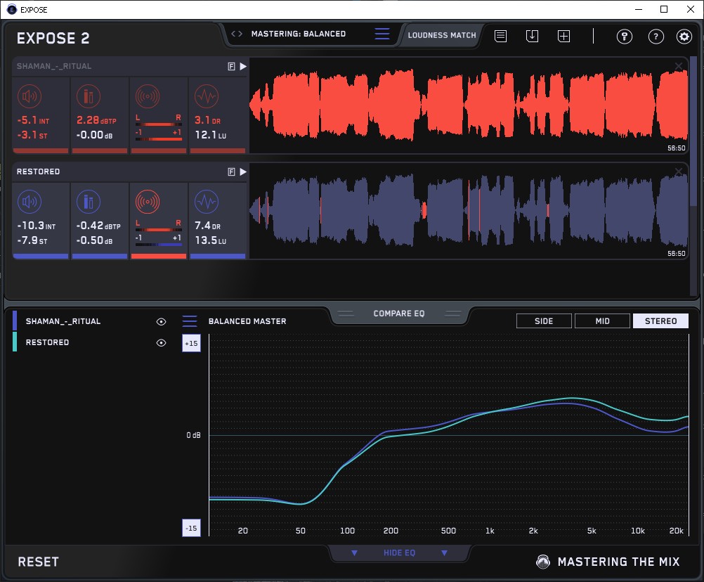 Обработка проводилась в Adobe Audition с плагинами Thimeo Stereo Tool, FabFilter Bundle; iZotope RX