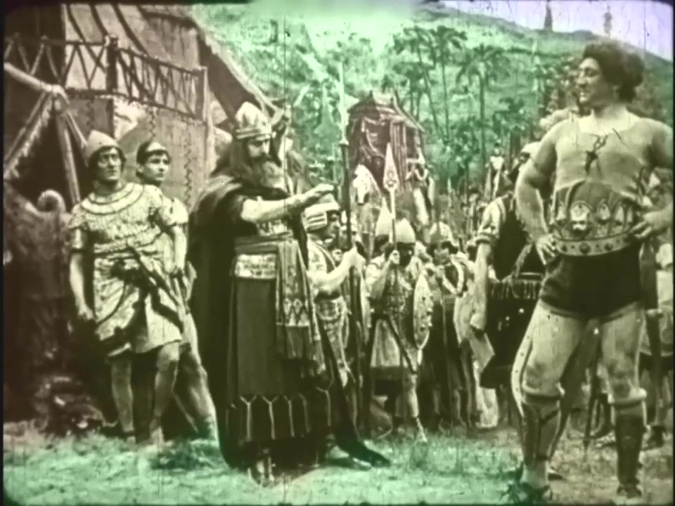 Описание: Экранизация библейской истории. Возможно самая первая экранизация. Давид, мальчик-пастух, побеждает великана Голиафа и спасает народ Израилев.