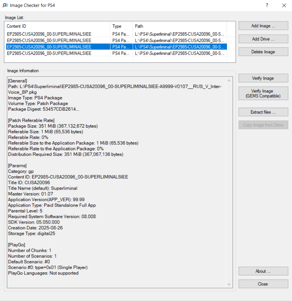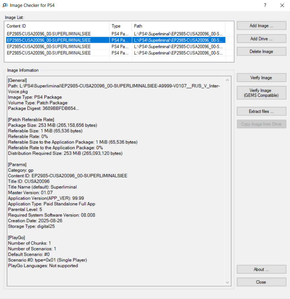Скриншот кода игры/региона игры/версии игры и версии прошивки