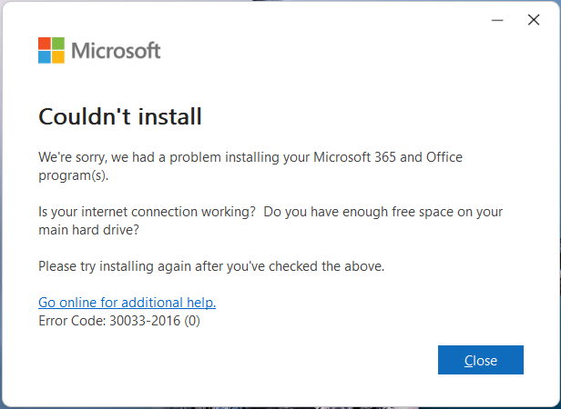 Во всех случаях возникает одна и та же ошибка, но Интернет доступен, и места на диске достаточно.